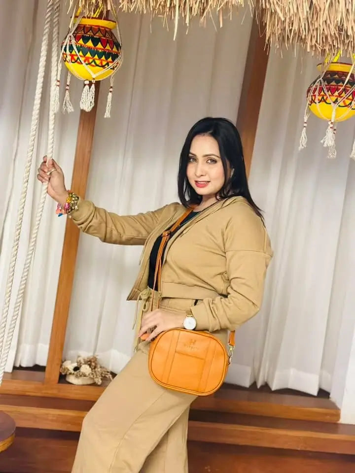 Genuine Leather Round Crossbody Handbag টি উন্নত মানের এক্সেসরিজ ও মেটল সহ সম্পূর্ণ এক্সপোর্ট কোয়ালিটির চামড়ার ব্যবহার করা হয়েছে।